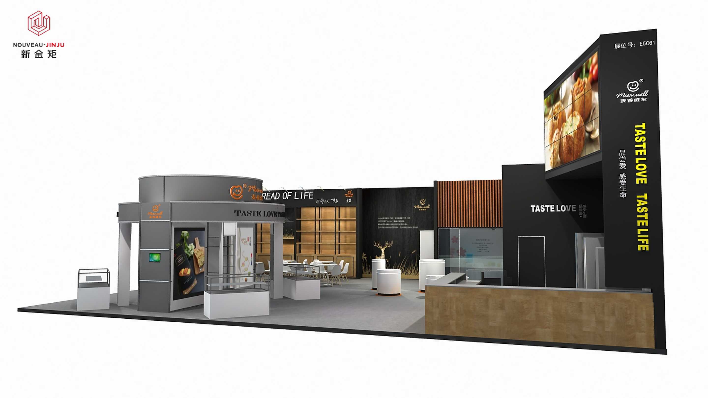高端大气展台|上海烘焙展 案例名称:上海烘焙展-新迪嘉禾 案例色调:黑色、灰色 关键词:展位设计|展位搭建|展览美陈、 案例说明:以黑灰为主色调的展台,整体显得高端大气,两面开阔式的展台设计,增加了视觉上的面积延伸,两面的背景板叠加丰富的元素来宣传品牌调性,展台中心由...